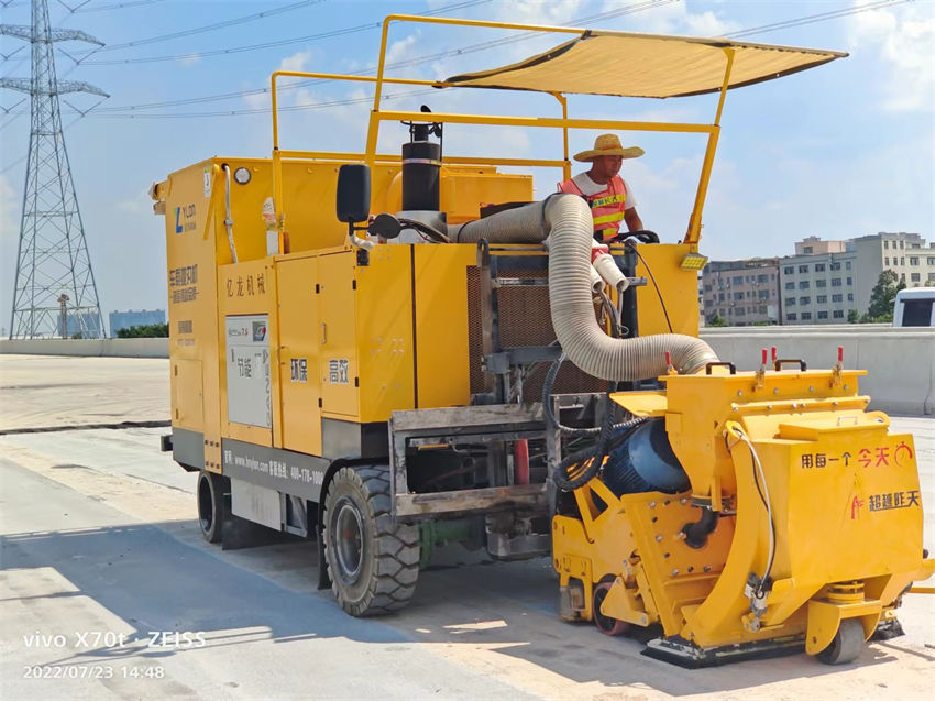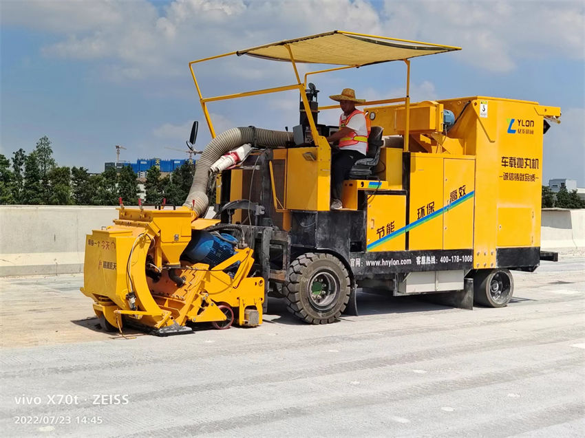 YP2999DZ型號(hào)駕駛式路面拋丸機(jī)是柴油機(jī)驅(qū)動(dòng)的大型自行走式拋丸設(shè)備,采用拋丸裝置和吸塵系統(tǒng)駕駛式設(shè)計(jì),是為各種道路建設(shè)及維護(hù)保養(yǎng)施工的環(huán)保型產(chǎn)品,在施工作業(yè)的過(guò)程中可做到無(wú)塵,丸料可自動(dòng)循環(huán)使用。該設(shè)備可用于:混凝土橋面防水打毛、瀝青路面的清理和打毛,以增加表面粗糙度;路面、及橋梁的抗滑性能恢復(fù);瀝青路面泛油的清理、標(biāo)志線清理;鋼橋面防腐涂裝處理; 機(jī)場(chǎng)道路除膠和除線。